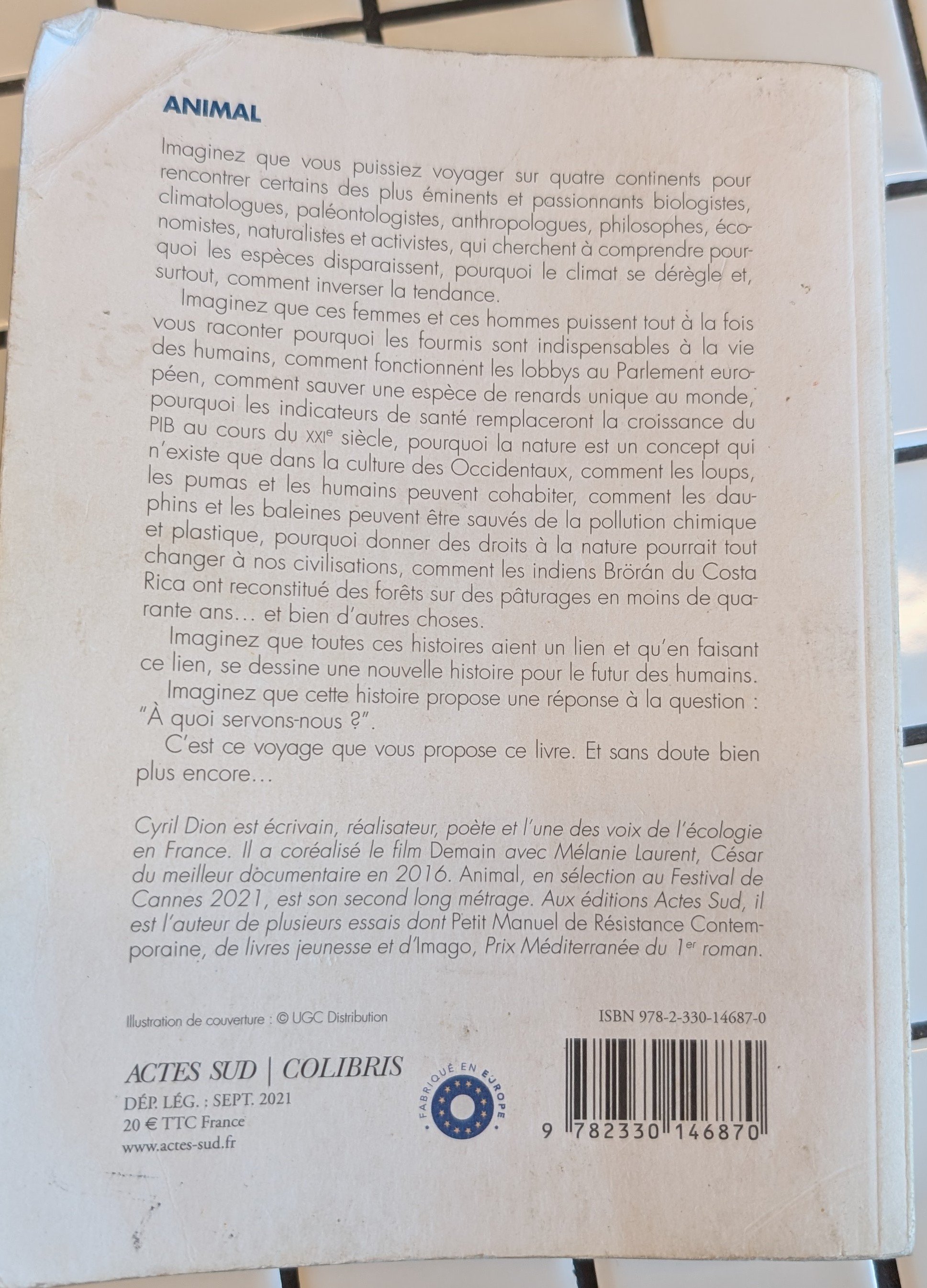 Le livre de Cyril Dion "Animal" Location dans le principe "livres pour la transition" - le bénéfice sera reversl au mouvement citoyen "Hautemorges en transition" Veuillez le réserver pour au minimum 21 jours (le rabais va s'activer)