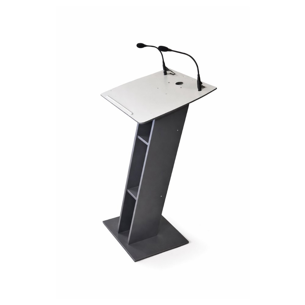 PUPITRE DE DISCOURS AVEC MICRO Élégant et fonctionnel, ce pupitre avec microphones intégrés est idéal pour structurer une prise de parole lors de vos événements. Il offre un support stable et une diffusion claire de la voix, parfait pour discours officiels, conférences, cérémonies ou présentations professionnelles. Caractéristiques techniques : Structure : Métal Plateau : Incliné avec support micro Équipement : Double micro col de cygne intégré Utilisation : Discours, conférence, cérémonie, présentation Idéal pour : discours de mariage, conférence, événement d’entreprise, cérémonie officielle.